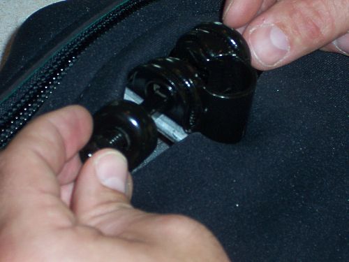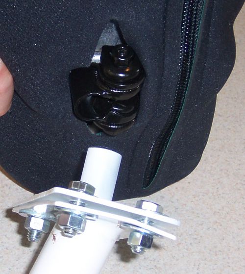 round post adaptor is attached to the round seat rails. If not already installed, remove nuts and center